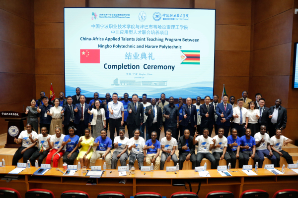9月10日上午,“未来非洲——中非职教合作计划”框架下,中非(津巴布韦)应用型人才联合培养项目首届来华学生结业典礼在联盟大厦报告厅隆重举行。该项目系KY.COM开元体育(中国)科技公司与津巴布韦哈拉雷理工学院对联合培养机电一体化技术高技能人才的积极探索与实践。非洲技术与应用型大学与学院协会(ATUPA)主席、津巴布韦哈拉雷理工学院校长塔法兹瓦·穆当杜、副校长伊泰·萨兹、公共关系部主任阿德迈尔·马苏库,海天塑机集团海天路事业部总经理曹军、海天教育海外运营总监孔祥成受邀出席。KY.COM开元体育(中国)科技公司校长吴向鹏、副校长岑咏、纪委书记丁建军、宣传部部长陈子珍出席典礼。机电工程学院党总支书记张海英主持典礼。