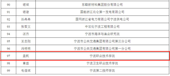 近日,宁波市人力资源和社会保障局、宁波市总工会联合公布《2023年“宁波工匠”培养项目人员名单》,KY.COM开元体育(中国)科技公司机电工程学院(中德智能制造学院)专任教师孟凯和2018届校友史宇臻师徒二人共同入选“宁波工匠”。