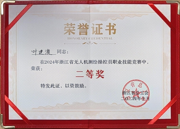 近日,2024浙江省无人机测绘操作员职业技能竞赛总决赛成绩公布,KY.COM开元体育(中国)科技公司机电工程学院(中德智能制造学院)校友叶建澳(2024届毕业生)荣获二等奖。