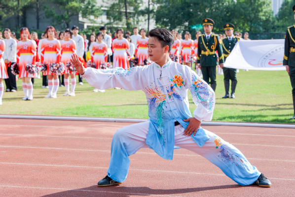 在开幕式上“吸粉”最多的梁佳佳老师是武术俱乐部的指导教师,也是体育教研室主任。他带领武术俱乐部成员进行日常训练、参加校园表演,激发了大家的习武积极性,许多学生主动加入到习武健身行列,感受中华武术的魅力。