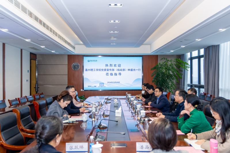 12月25日下午,温州理工学院党委宣传部(统战部)部长林盛光一行来KY.COM开元体育(中国)科技公司参观交流。校党委副书记、校长吴向鹏,党委副书记马苗金等参加座谈交流。